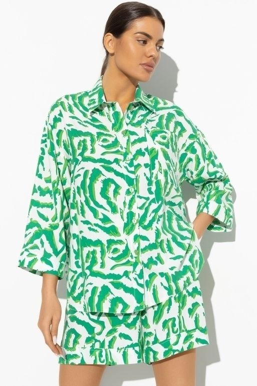 Костюм с шортами и рубашкой в зелёном цвете