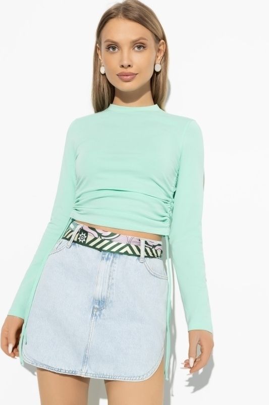 Укороченный лонгслив мятного цвета с кулисками и завязками по бокам