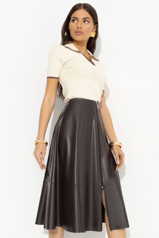 Юбка коричневая из экокожи на молнии