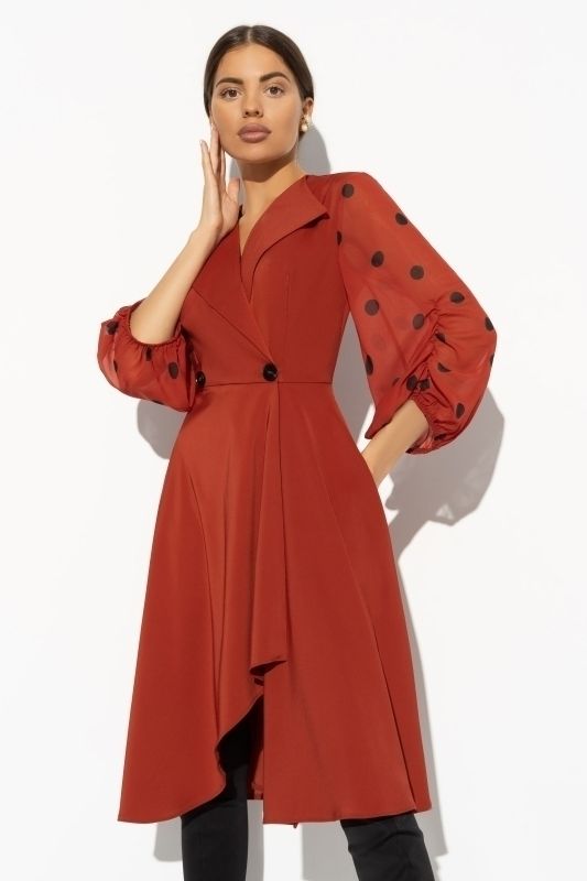 Платье красное на запах с рукавами из шифона