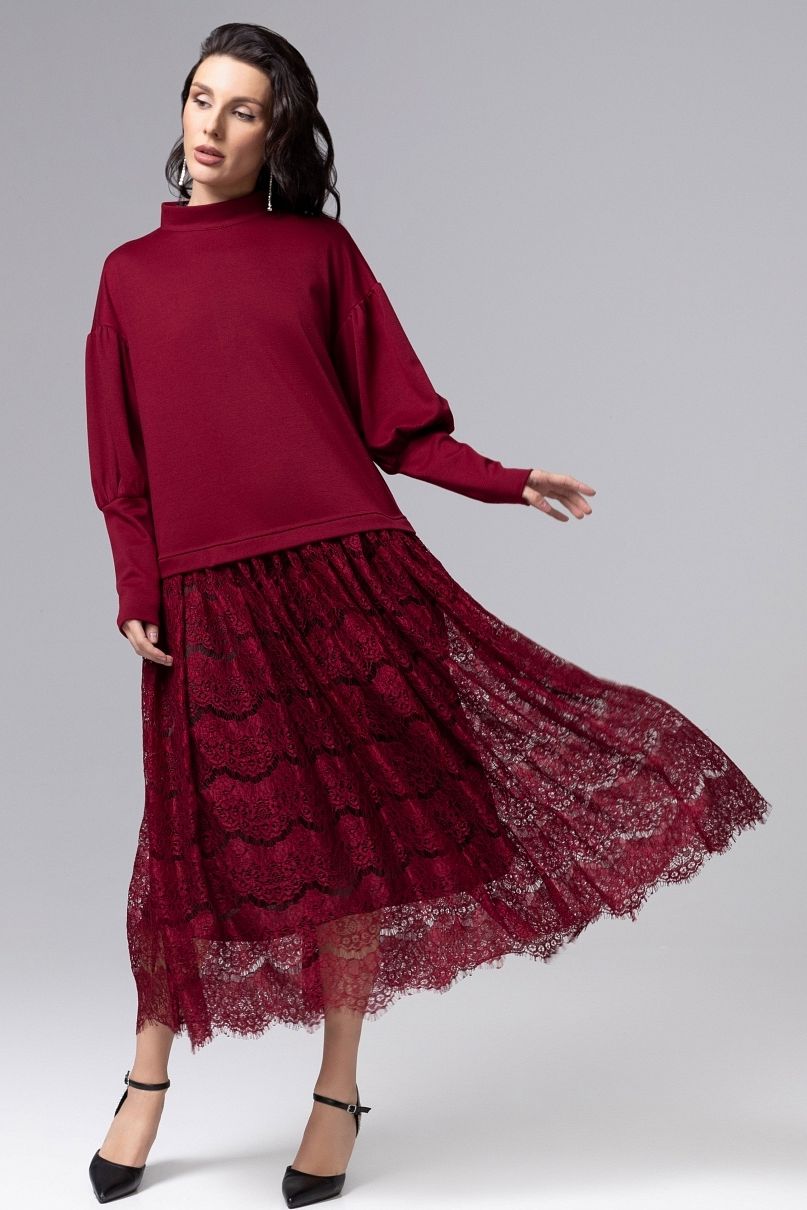 Платье трикотажное голубого цвета с рукавом-фонарик Элси №5