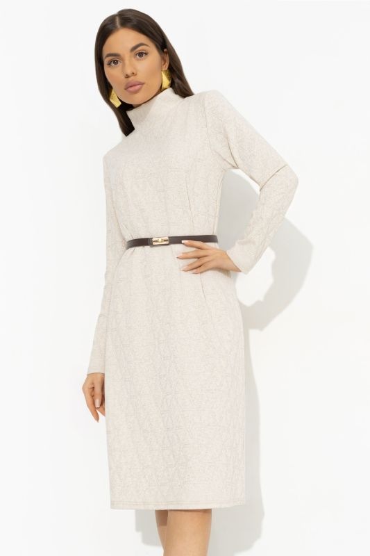 Платье прямое из трикотажа бежевого цвета 54 размера