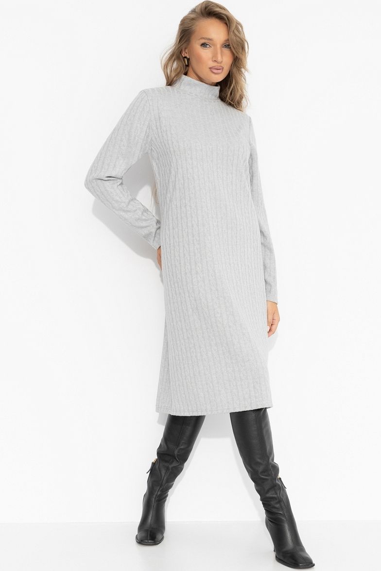 Платье серое из фактурного трикотажа от компании Charutti. Горловина оформлена воротником-стойка. Втачной длинные рукав. Платье без застежки. Изделие хорошо смотрится на любом типе фигуры. Это Ваш отличный образ, в котором вы всегда чувствуете себя уверенно. Ремень из экокожи в комплект не входит, продается отдельно.