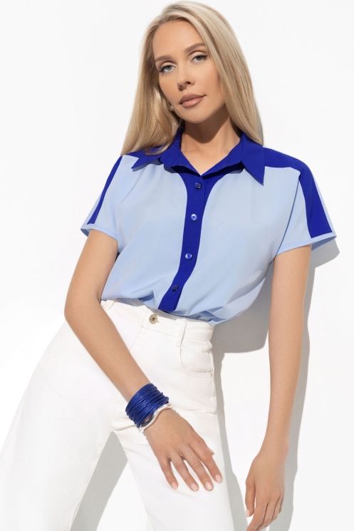 Блузка голубая с контрастной отделкой на пуговицах 56 размера