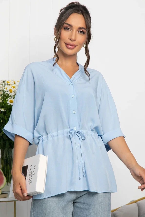 Блуза однотонная голубая