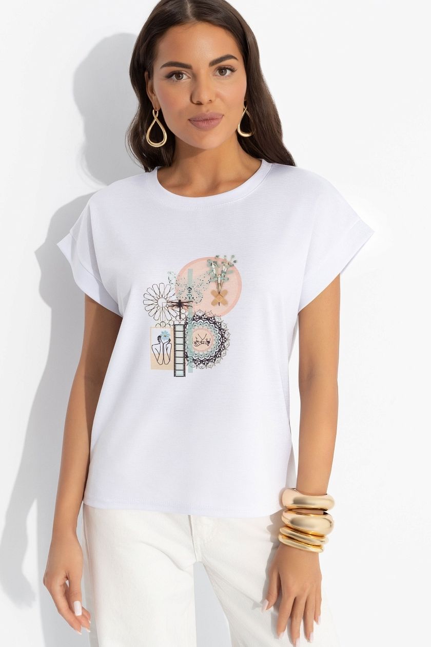 Футболка белая со спущенным плечом от компании Charutti. Модель прямого силуэта, выполнена из трикотажной ткани "милано". Круглый вырез горловины. Короткие рукава. Идеальный выбор на каждый день.