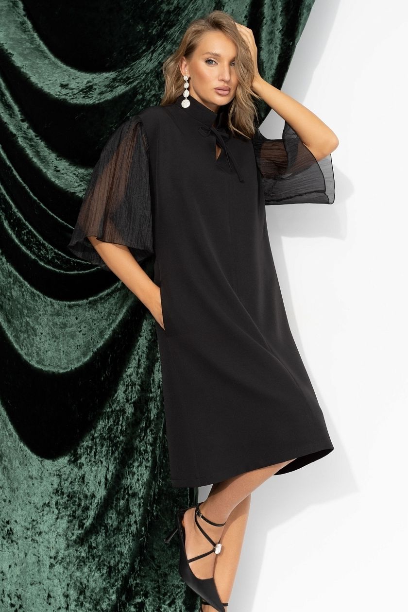 Платье чёрное с рукавами из органзы