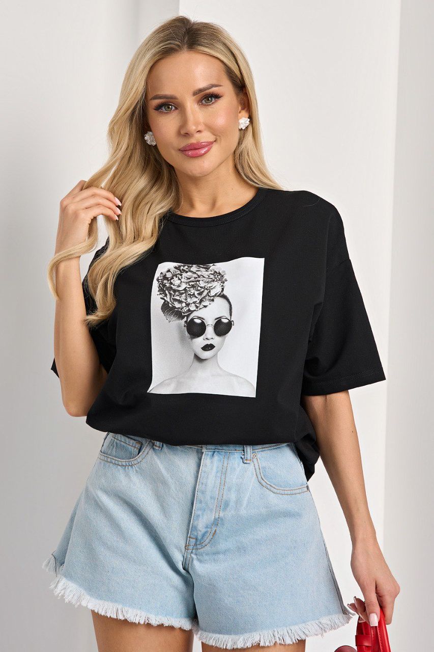 Футболка трикотажная чёрная с принтом