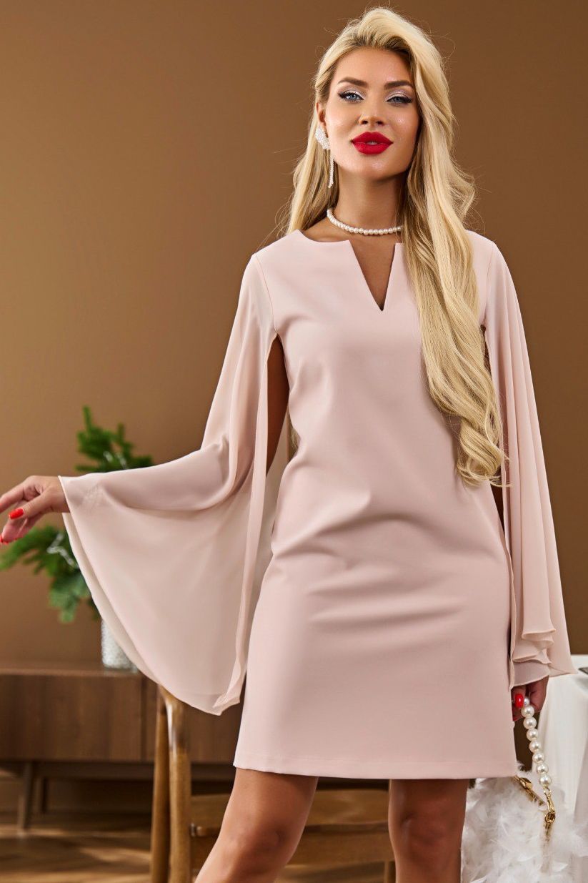 Платье светло-бежевое с рукавами из шифона