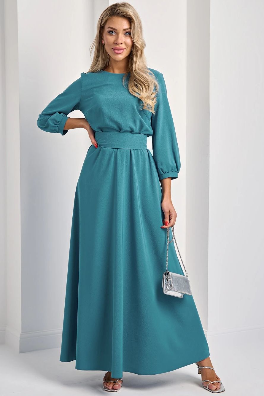 Платье длинное с поясом-кушак в цвете морская волна