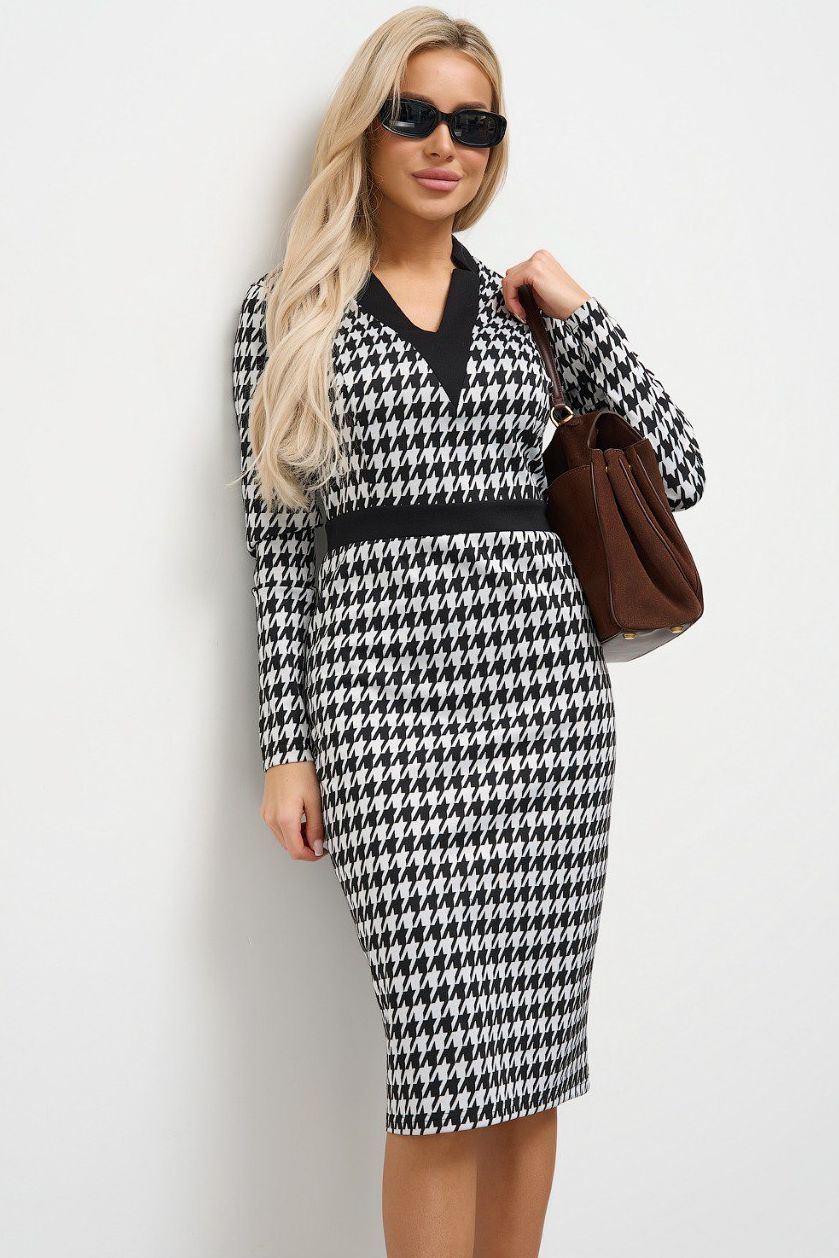 Платье-футляр чёрно-белое трикотажное с принтом