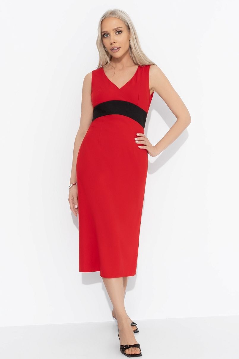 Платье-футляр красное без рукавов
