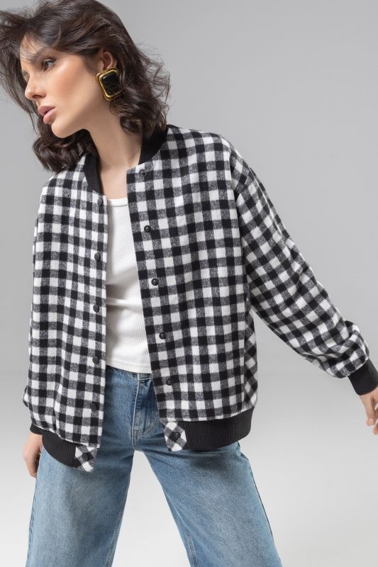 Бомбер чёрный в клетку на кнопках