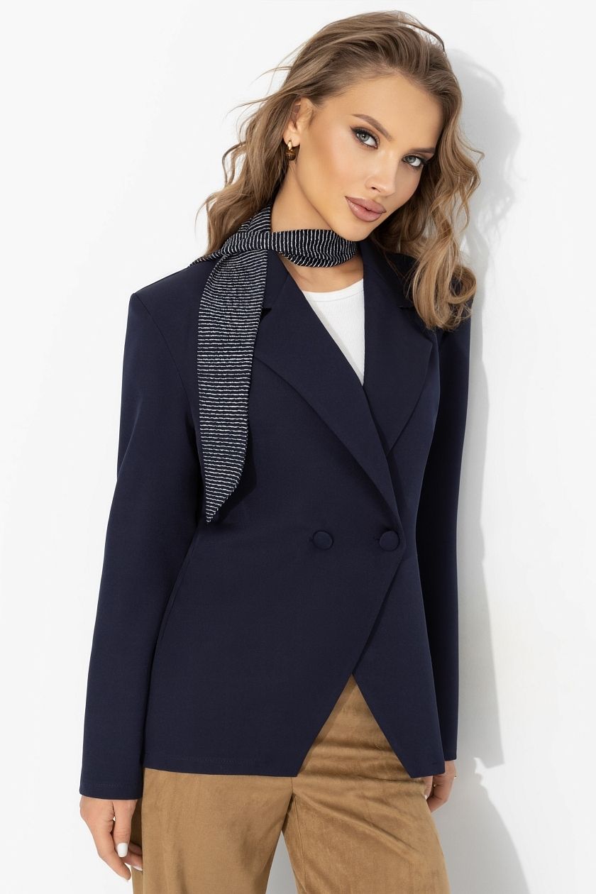 Жакет тёмно-синий с застёжкой на пуговицу от компании Charutti, выполнен из костюмной ткани. Модель с элегантными лацканами и фирменным совершенством посадки. Отличный выбор для романтичных, стильных, немного таинственных натур. Без подклада. Идеальный выбор для создания женственного образа.